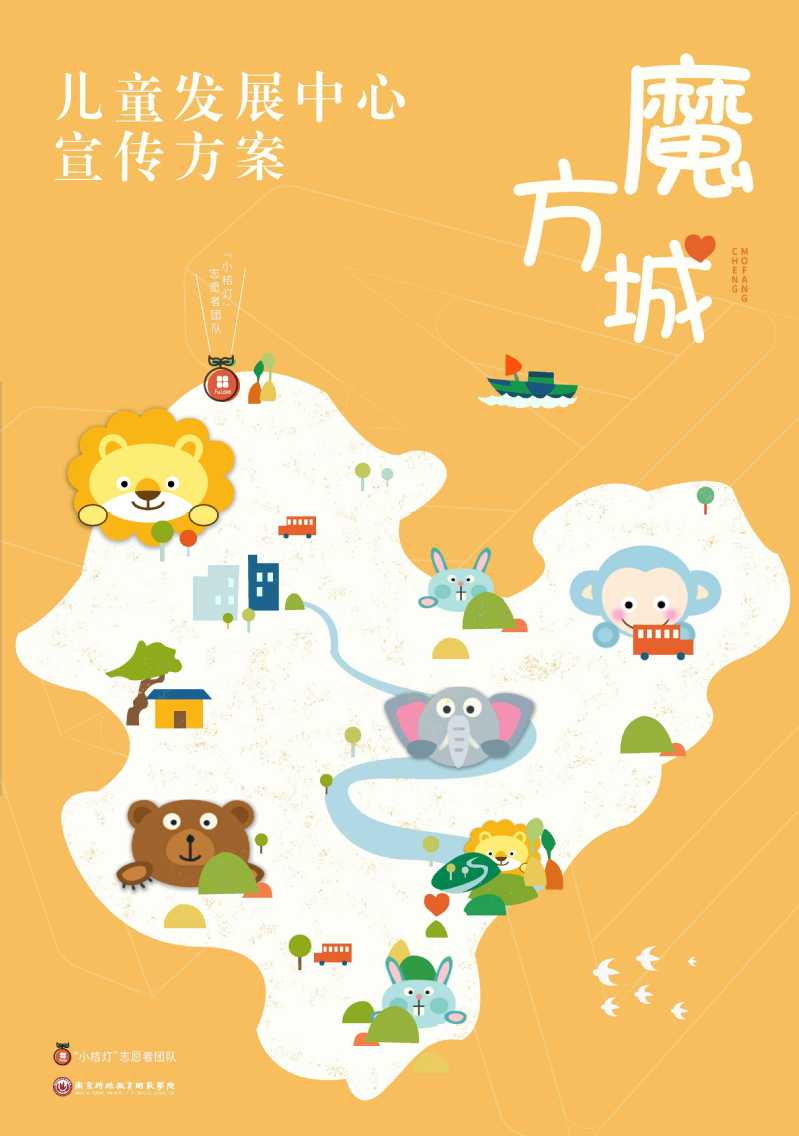 实践前期,团队前往中心实地考察,与机构教师细致交流,了解了当下机构所需以及所存在的部分问题。团队还邀请机构教师和员工家长参与调查问卷的填写,为设计品牌产品收集数据。实践后期,团队成员多次交流考察心得并将调查问卷结果进行分析,为中心做出了具有针对性的服务设计方案,配套进行了视觉形象设计和服务活动设计。针对调研和实践中发现的问题做出相应解决方案:就其宣传力度较小的问题设计了新旧媒体融合的宣传策略;针对展板褪色问题设计出了一整套符合机构文化内涵建设的展板及标语等;另针对中心配套设计了办公用品、服装、抱枕等其他文化衍生产品共计30余种,并结合前期问卷调研结果,为机构整理了一套发展方案。
