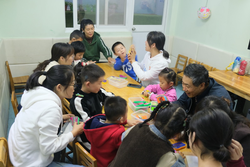 进入康复中心,党员同志们亲切地向孩子们问好,并一同参观了孩子们的活动室和休息室,大致了解了孩子们的基本情况。这些孩子都患有不同程度的听力障碍,均佩戴了助听器,部分听力障碍严重的孩子佩戴了人工耳蜗。党员们陪同可爱的孩子一起表演节目、一起玩游戏、一起看图识物、一起亲密互动,欢声笑语回荡在教室里。随后,全体党员和志愿者们将准备好的爱心礼包送给孩子们,每一个孩子脸上都洋溢出幸福而灿烂的笑容。最后,宁声听力康复中心负责人高建华老师对本次志愿服务活动表示了感谢和肯定。