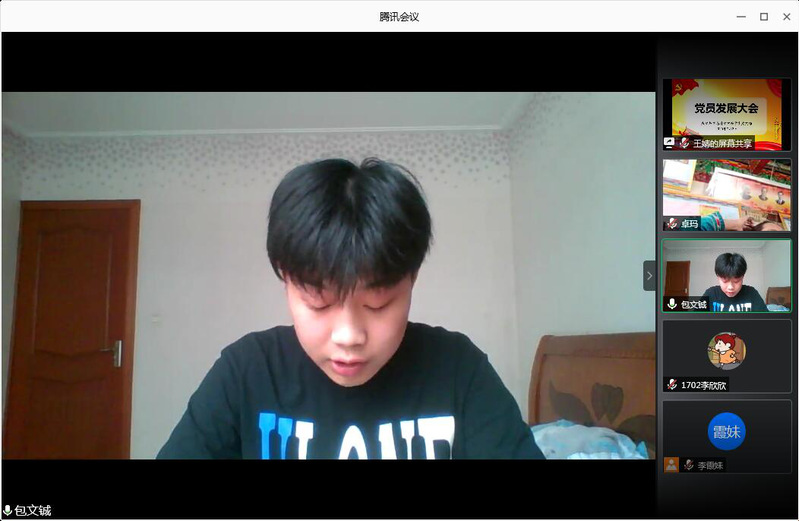 2020年7月3日下午2点,公司员工党支部在线召开员工党员发展大会。支部全体党员、六名发展对象以及入党介绍人胡作进经理、韩雪、颜无瑕老师一同参加了大会。会议由员工党支部书记李霞妹老师主持。
