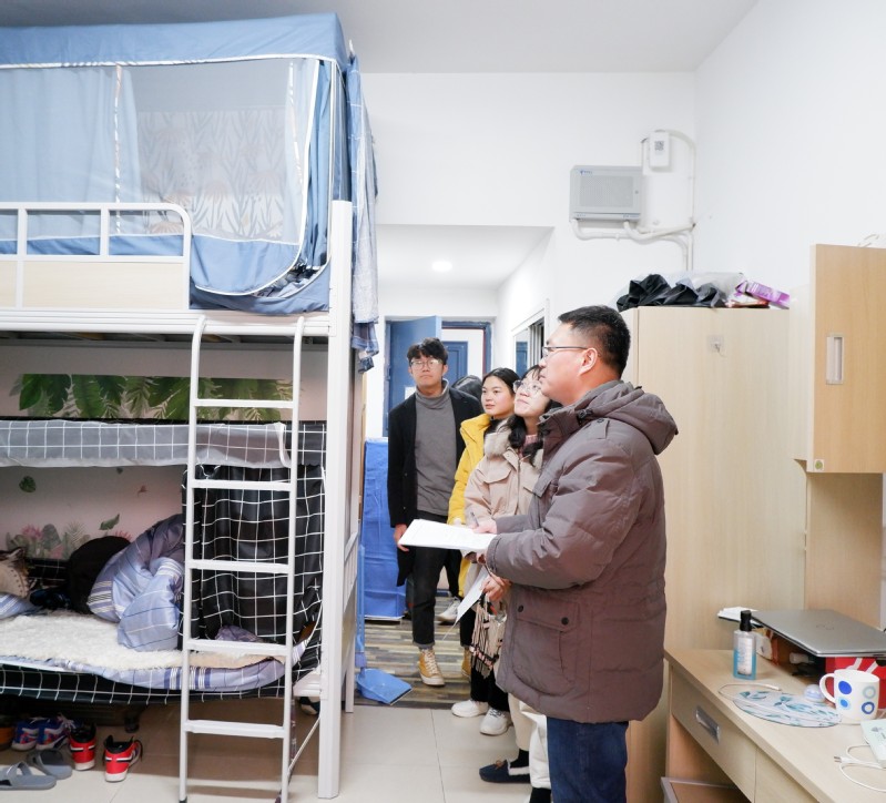 为推进宿舍文化的建设,营造舒适、安全、整洁的学习环境,12月16日,公司开展了“三和”宿舍创建评比活动。数学与信息科学公司党总支书记李宏伟,辅导员樊琬、李霞妹、林敏老师走访宿舍,参与宿舍评比。