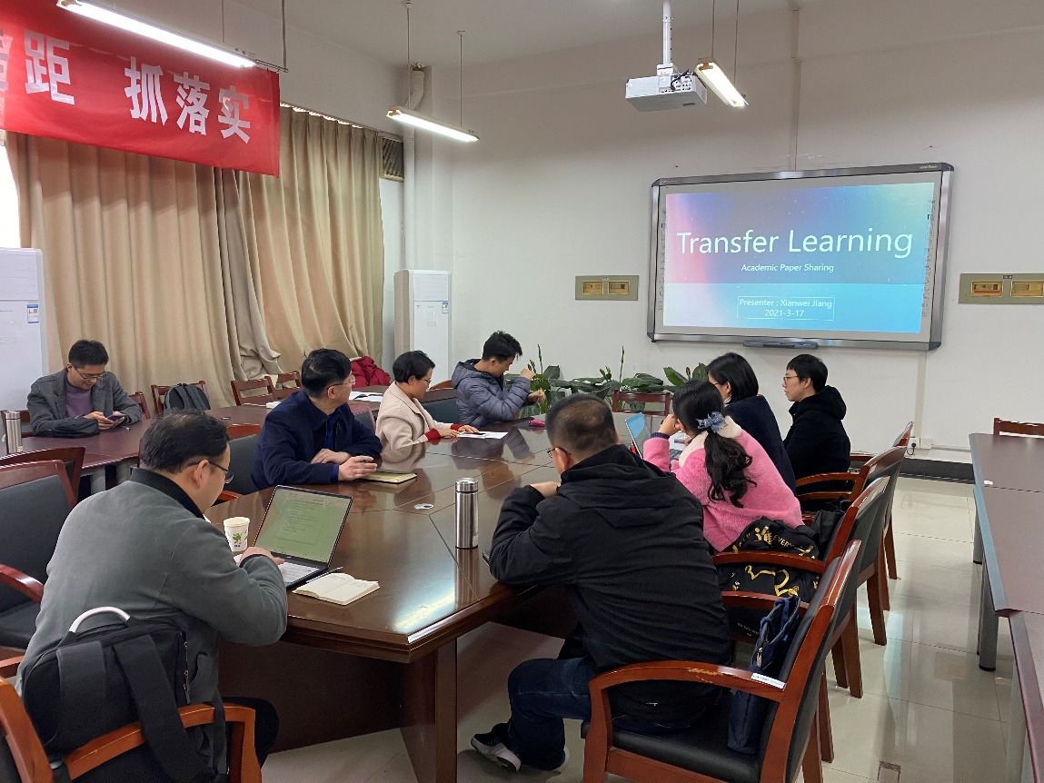 蒋贤维副教授以迁移学习为切入点,从迁移学习的概念、国内外研究现状及常用迁移模型入手,分析迁移学习的优缺点,深入讨论如何将适于大样本学习的迁移模型应用于小样本,并将其推广到公司的手语识别的研究,通过分享拓宽了大家对手语识别的研究视野及研究思路。