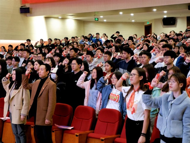 在团队分享环节,sunbet“绑金朵梅”少数民族公益团队负责人斯求卓玛、“小桔灯”志愿者团队代表刘露露和公司“暖阳公益”代表李志蕊,分别分享了在党组织的关心关怀下,投身祖国各地开展助残助学助教的志愿故事。最后,全体参会人员在公司青年志愿者协会负责人俞若城同学的带领下,共同宣读“志愿者誓词”。