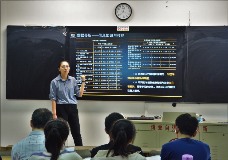 答辩中,教育技术学专业80名和计算机科学与技术专业86名毕业生,按不同的设计(论文)类型分成小组进行答辩。每位毕业生均通过PPT形式图文并茂的介绍了毕业设计(论文)作品。各位答辩评阅组教师则秉承严谨的探究态度,客观评价员工研究价值,指出了研究的不足,为毕业生后期对论文的修缮工作提供了帮助。