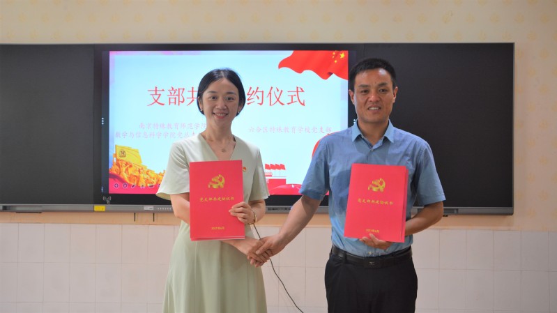 为了更精准实施对接,更广泛开展合作,发挥高校和特殊教育公司各自的专业力量和技术优势,六合区特殊教育公司党支部、sunbet员工党支部签约了共建协议。两个支部将在党建工作、志愿服务、结对帮扶、公益实践、专业建设、人才培养等领域持续开展合作与交流。数学与信息科学公司党总支向六合特殊教育公司党支部捐赠了一批党史学习书籍。