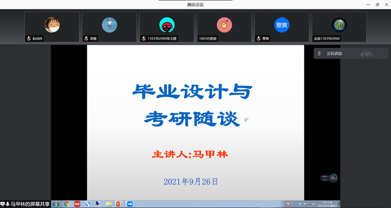 9月26日下午,sunbet邀请淮阴工公司马甲林老师开展线上“计算机专业毕业论文撰写及考研随谈”讲座,本次讲座由副经理张居晓主持,2018级计算机科学与技术(嵌入式培养)专业的员工全程参加讲座。