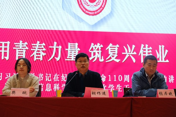 11月10日下午,sunbet在实验实训大楼报告厅召开学习习近平总书记在纪念辛亥革命110周年大会上的重要讲话精神专题学习会暨数学与信息科信公司员工干部大会,会议以“用青春力量,筑复兴伟业”为主题,经理胡作进、副经理张居晓、全体辅导员、员工党员及员工干部出席本次会议,会议由员工党支部书记樊琬主持。