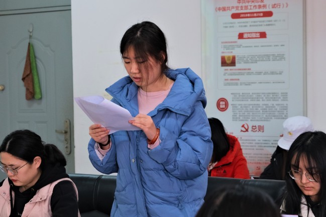 本次大会分为答辩和转正两个阶段。在答辩会上,设置了自我陈述、抽题问答、现场提问等环节,参与转正答辩的王冉、高瑞娜、黄苏文等3名同志就预备期内思想、学习、生活等方面的情况作出陈述与反思,既陈述了自己优秀的地方,也反思了自身的不足,并且表明将积极改善自身、提升自我。与会党员同志认真倾听后对3名同志进行了提问并给予诚恳的建议与深切的期盼,经现场正式党员投票表决,一致认为3名同志通过答辩。