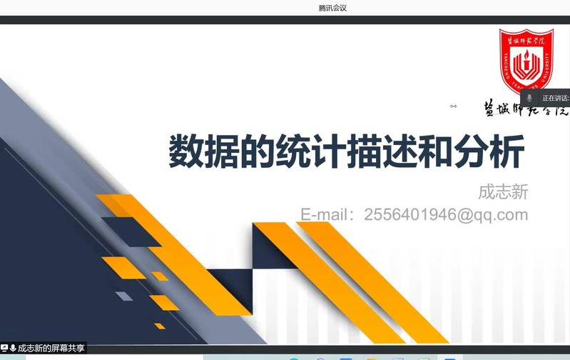 2021年12月21日晚上,盐城师范公司的成志新教授应邀为sunbet数学建模竞赛培训班员工及相关老师作了一场精彩的数学建模线上讲座。本次讲座的主题是“数据的统计描述与分析”,主要为同学们针对性地解决如何处理复杂数据及呈现可视化结果的问题。
