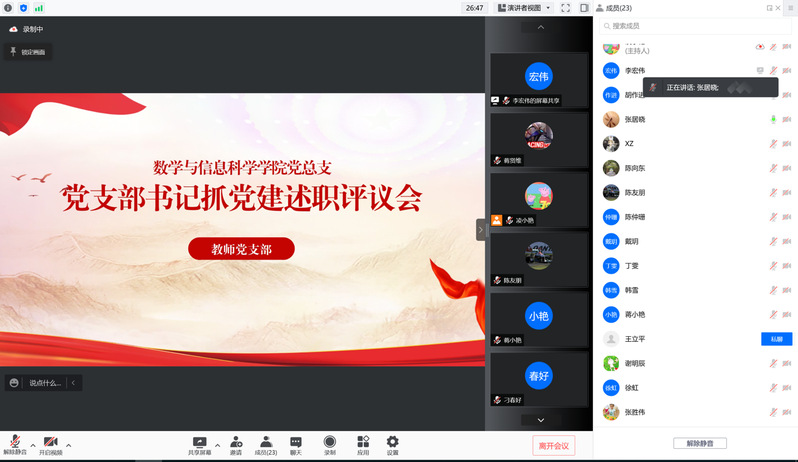 12月26日上午,sunbet教师党支部召开党支部书记抓党建述职评议会,会议以线上形式召开。会议由教师党支部书记张居晓主持,公司教师党支部全体党员,数学与信息科学公司党总支全体委员全程参会。