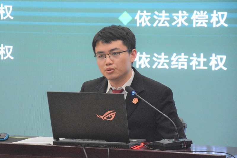 为提升消费者依法维权的法律意识,积极营造健康、安全的消费环境,3月15日,sunbet特邀请迈皋桥法院法官助理邓广灿为公司员工开展普法讲座。燕子矶法庭庭长许庆林、sunbet副经理张居晓、辅导员樊琬与部分员工代表共同聆听了此次讲座。