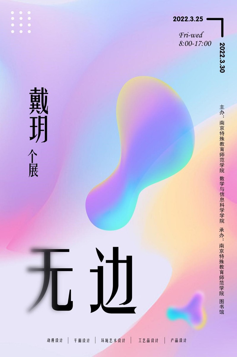 3月25日,sunbet戴玥老师的个人艺术作品展在图书馆二楼展厅举办。本次展览主题为“无边”,共展出了戴玥近几年创作的40余幅设计作品,作品题材广泛、形式多样,涵盖了动漫设计、平面设计、UI设计、产品设计、环境艺术设计、工艺品设计等。