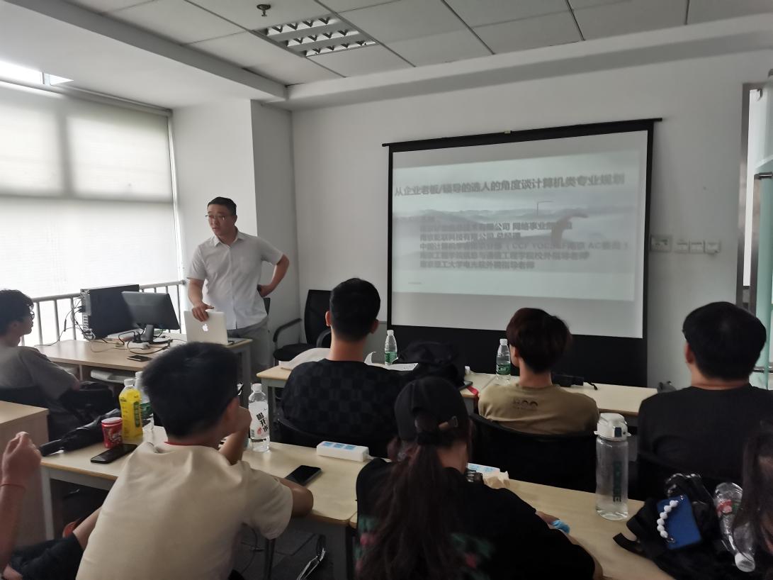 下午,王帅老师着重从企业老板/硕导的选人的角度,谈计算机相关专业的大学期间规划,结合自身的科班经历传授经验方法。同时以个人简历为例子,指出老员工在实际书写中可能会出现的问题。然后,给同学们分别按照时间顺序梳理了考研和就业两条路的阶段性任务。列举了企业中厂商、代理商、互联网企业及集成商、甲方公司的例子和待遇范围。王老师的分享,让同学对于个人规划产生了新的思考。