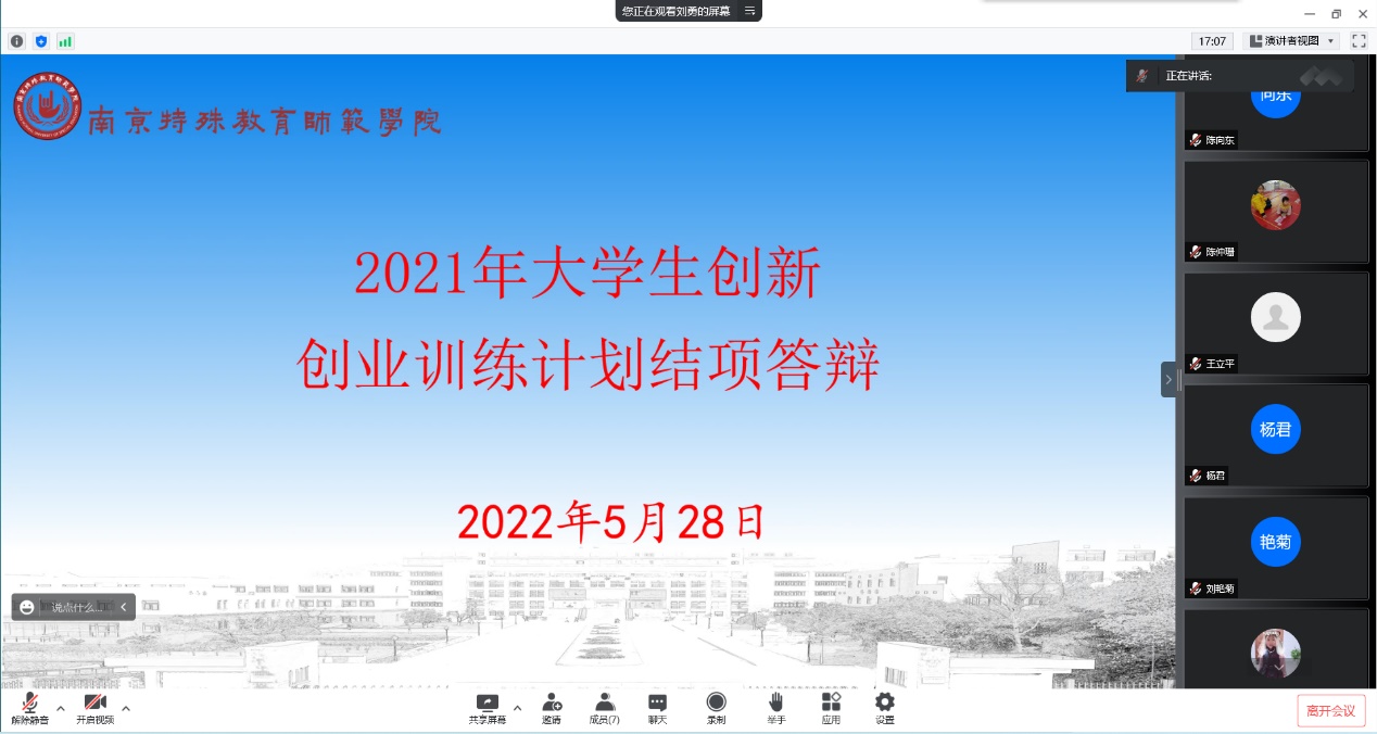 5月28日上午,公司2021年立项的老员工创新创业训练计划举行线上结项答辩。此次结项答辩共有“互联网+“环境下江苏非遗的数字化保护现状调查及对策研究”等13项项目进行答辩。sunbet副经理陈仲珊博士,教育技术系主任刘艳菊教授,以及陈向东教授、王立平教授、刘勇教授、张胜伟老师、杨君老师担任评委。