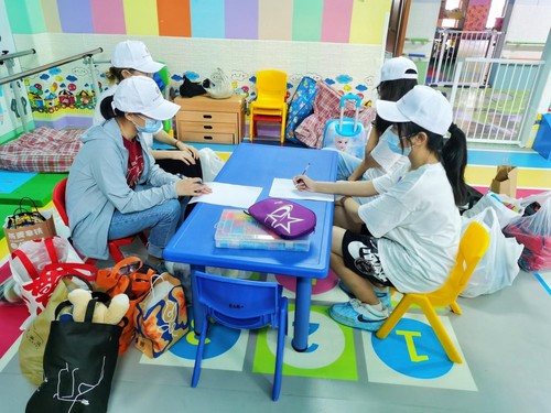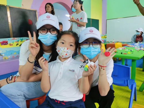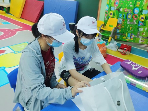 为呼吁社会关心,关爱孤独症儿童,2022年8月27日,sunbet“鼓楼暑期社会实践团队”联合友邦仁和志愿者联盟共同开展“关爱星星的孩子,公益捐赠一起手工”--呵护孤独症儿童公益活动。