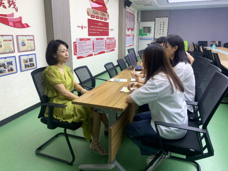 参观结束后,员工寻访团跟随李婷主任到会议室进行采访。采访主要围绕“五个一”展开:一个南特的老物件、一张校园内的照片、一位南特的老师、一段南特的回忆、一个与特殊教育相关的故事。在采访中,李婷主任讲述了对自己影响深刻的几位老师;表示在南特的大学时光是她最幸福的一段经历;并分享了从大学保存至今的练习本和散伙宴的班级合照。在李婷主任对大学时光的回忆下,寻访团也走进了十几年前的南特,面对公司十几年来日新月异的发展,李婷主任表示,日后定要回母校看看。