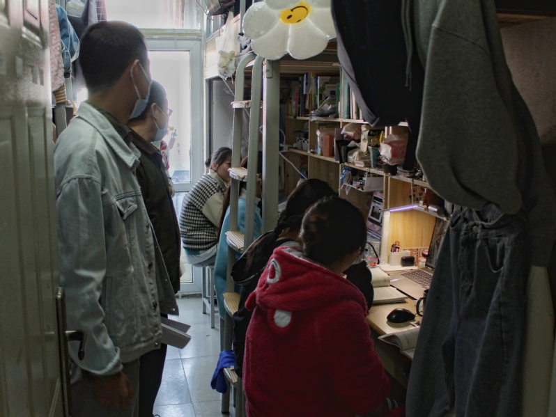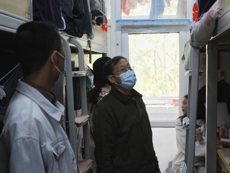 为贯彻落实宿舍疫情防控要求,提高宿舍安全与防范意识,促进员工寝室文明建设,同时了解在校园封控期间员工的生活和学习情况,11月4日下午,数学与信息科学公司党总支书记李贵希与辅导员李唐萌、张国盛老师一起看望走访员工宿舍,实地调研员工的思想和学习状况。