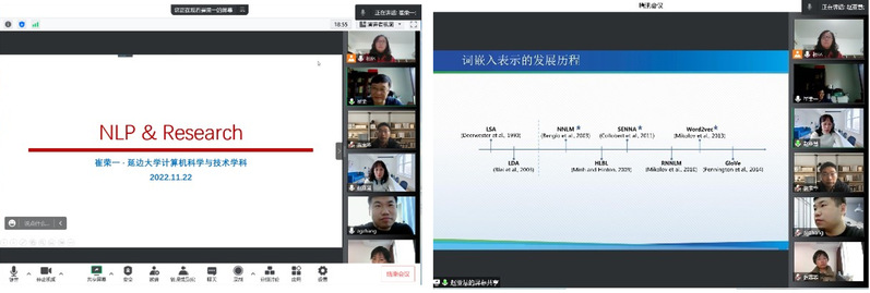 2022年11月22日下午,公司开展智能信息处理技术学术报告会,邀请了延边大学智能信息处理研究所所长崔荣一教授,延边大学人工智能中心主任赵亚慧教授,常州大学计算机与人工智能公司袁宝华副教授,江苏警官公司大数据刑侦专业张菲菲主任,延边大学计算机公司张振国副教授,公司计算机系的老师参加了此次学术沙龙。