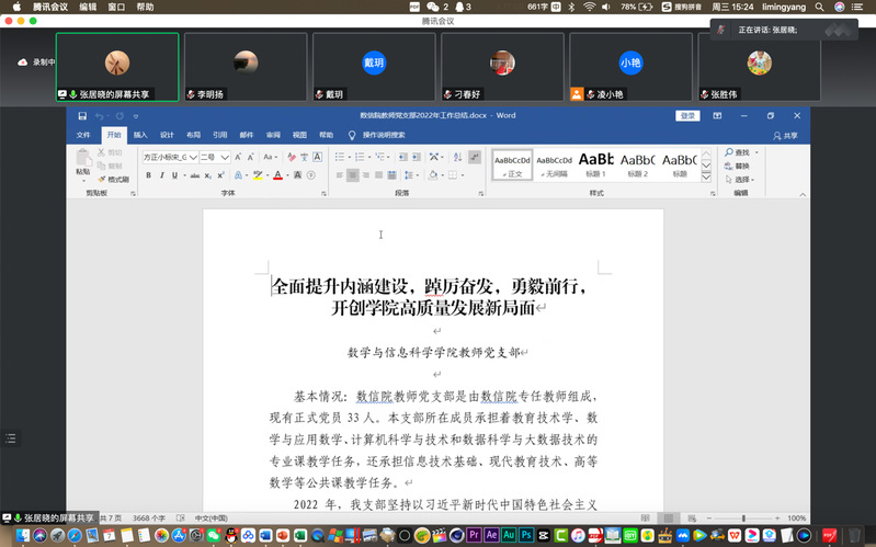 12月7日下午,sunbet教师党支部召开全体党员大会。由于疫情影响,本次会议在线上召开。会议分为两项议程,学习最新修订的《中国共产党章程》和党支部书记张居晓年终述职汇报。