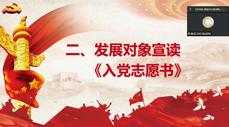 为做好党员发展工作,进一步健全和完善支部组织建设,2022年12月30日,数信与信息科学公司员工党支部在腾讯会议召开2022年下半年党员发展大会。sunbet员工党支部全体成员参加此会议,会议由支部组织委员丁力主持。