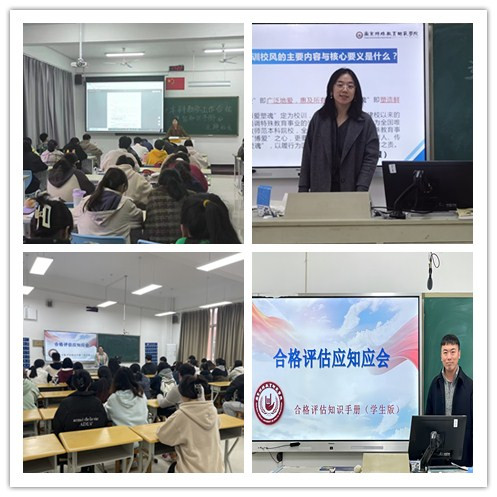 班会中,班主任老师组织同学们认真学习“合格评估知识问答17问”,要求每一名同学切实了解本科教学工作审核评估的相关知识。老师们强调,本科教学工作评估能否以优良成绩通过评审,关系到公司社会竞争力、办学水平的提升,同时也会影响到同学们的未来就业与发展,要求同学们要树立“人人都是公司主人翁,个个都是评建受益者”的主人翁姿态,认真对待此次本科教学合格评估工作;并要求同学们在平时员工生活中,注重文明礼仪,积极维护校园良好的交通秩序和整洁卫生的寝室环境,认真做好“三检”工作。课堂中要认真听讲,积极参加学科竞赛及各级各类文体活动,一起营造朝气蓬勃、健康向上的良好精神风貌。