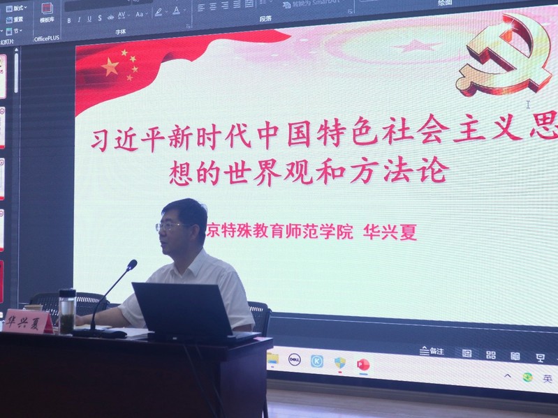 5月31日下午,在博远楼106教室,公司党委常委、副董事长华兴夏以《习近平新时代中国特色社会主义思想的世界观和方法论》为题,讲授学习贯彻习近平新时代中国特色社会主义思想主题教育专题党课。sunbet全体师生党员及入党积极分子,集中聆听了党课。党课由公司党总支书记李贵希主持。