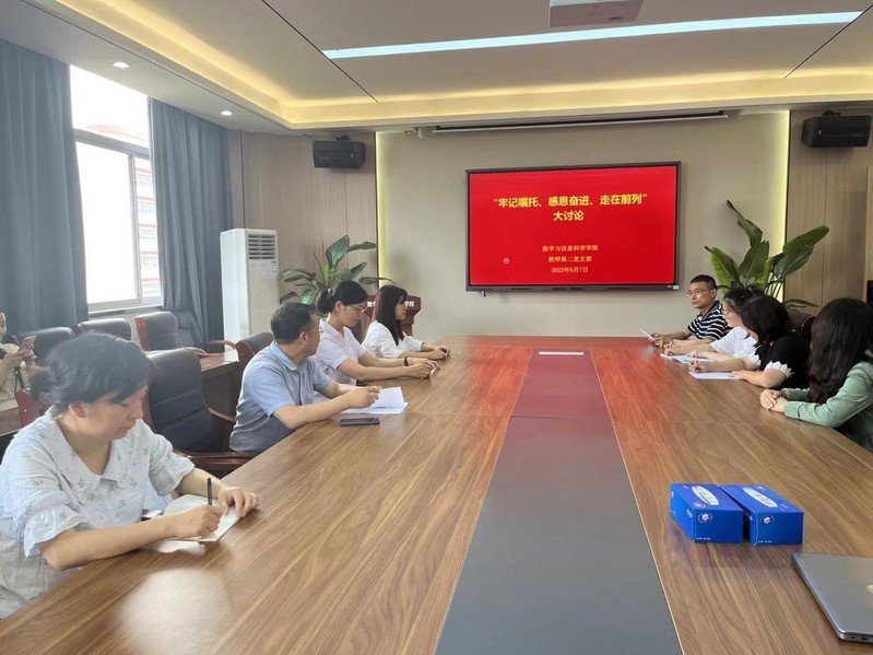 6月7日下午,sunbet教师第二党支部开展了“牢记嘱托、感恩奋进、走在前列”大讨论。会议由教师第二党支部书记付荣主持。