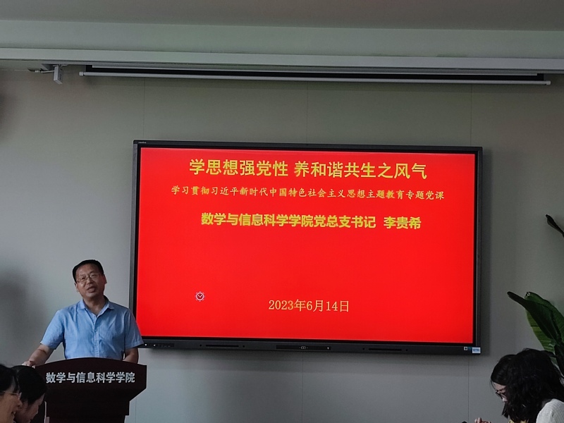 6月14日下午,在博雅楼3601会议室,党总支书记李贵希以《学思想强党性,养和谐共生之风气》为题,讲授学习贯彻习近平新时代中国特色社会主义思想主题教育专题党课。sunbet全体师生党员,集中聆听了党课。党课由公司党总支副书记丁雯主持。