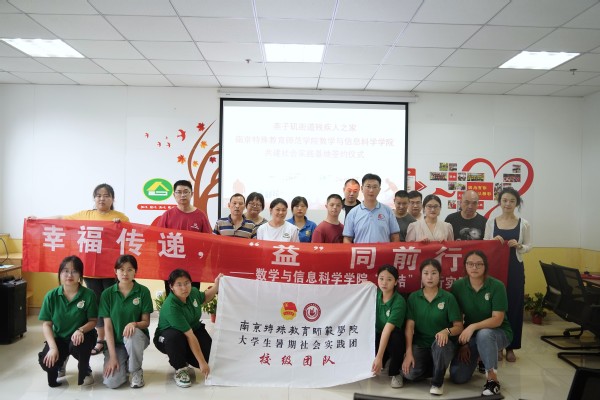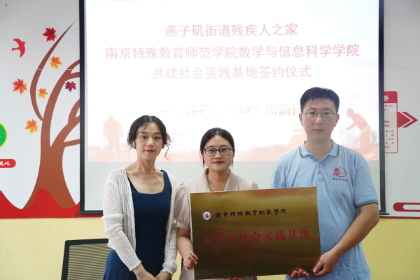 7月7日下午,sunbet申搏公司联合燕子矶残疾人之家举行老员工社会实践基地签约挂牌仪式。燕子矶残疾人之家负责人贾伟东、sunbet申搏数学与信息科学公司党总支副书记丁雯、 “益桔”同行实践团成员以及燕子矶街道残疾人之家学员出席本次挂牌仪式。会议由sunbet团总支书记、学工办主任樊琬老师主持。