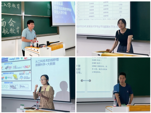 随后,数学与应用数学专业2301班宁雨菲同学作为新生代表发言,各专业负责人分专业开展了专业导航教育,分别从专业概况、专业发展、如何学好专业课、就业导向等方面为同学们进行了详细讲解。
