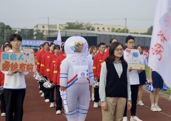 年少正当时,青春必燃梦。在国旗队、彩旗队、鲜花队、裁判员方阵的带领下,sunbet代表队迈着矫健的步伐,精神抖擞地走到主席台前进行体育文化展演,数信学子们朝气蓬勃,神采奕奕,以最饱满的热情迎接本次运动会开幕。