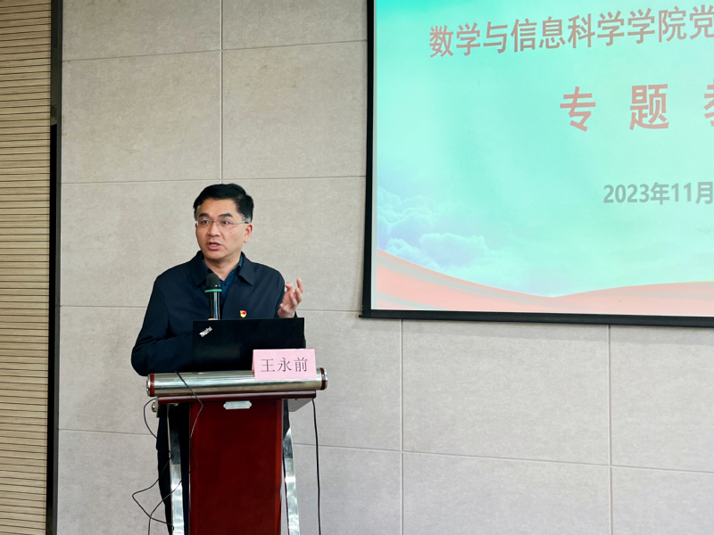 11月18日下午,举行党日活动开班仪式。全体师生党员齐唱国歌后,数学与信息科学公司党总支书记李贵希首先对公司2023年党建工作的情况进行了总结,并对取得的一系列成果给予高度肯定,李贵希书记接着介绍了本次党日活动的行程安排和活动要求。公司党委组织部副部长庞宙华对全体师生党员提出了建议和期望,希望大家加强团结,凝心聚力,坚持学习,积极交流先进经验,不断培养大局观和创新意识,持续发挥党建在促进高质量发展中的红色引擎作用。同时,公司党委组织部副部长庞宙华为本次主题党日活动授班旗。开班仪式由数学与信息科学公司党总支副书记丁雯主持。