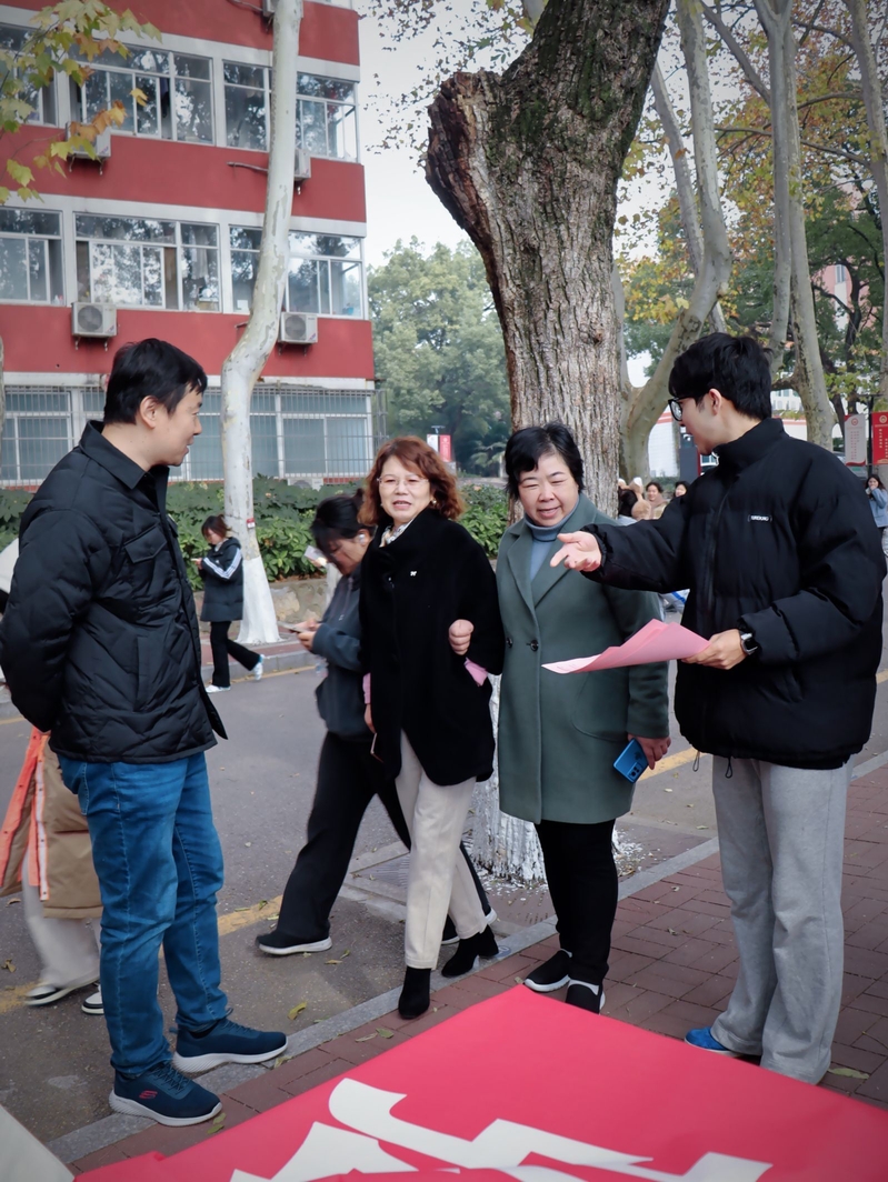 宪法集体朗诵环节,邓威娜、李欣豫、戴军站在一起精神饱满地集体朗诵宪法,他们令人振奋的声音在林荫道中回响。通过集体朗诵,让周围的同学们共同感受到宪法的崇高和庄严,增强了大家的法治意识和观念。