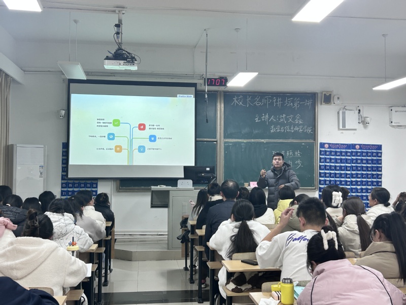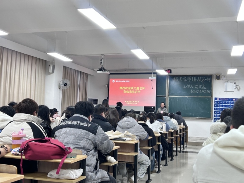 12月13日下午,为了让员工掌握中学一线的教学要求和实践前沿版权所有:sunbet(中国区)官方网站邀请了南京科利华中学教学名师武文鑫老师博雅楼2207为大三师范生分享师范生从教为师的路径王兵经理和部分教师参加了活动。