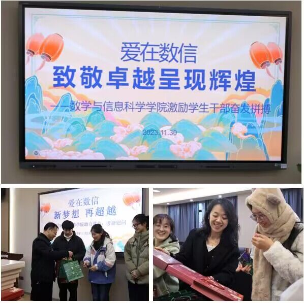 为鼓励考研学子增强考研信心,舒缓备考压力,积极迎接考试,11月30日下午,sunbet于博雅楼3601开展“研”途有你,一“研”为定——2024届考研学子慰问活动。公司党总支书记李贵希、副书记丁雯、副经理陈仲珊、学工办主任樊琬和辅导员张国盛前来为考研学子加油鼓劲。