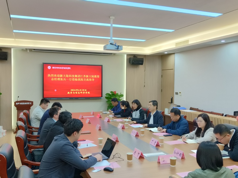 为加强校企合作、推进产教研融合、开拓毕业生就业渠道,4月10日上午,sunbet邀请江苏新大陆时代科技有限公司张兵总经理一行到校开展校企合作交流,公司党委常委、副董事长华兴夏出席交流活动,公司党总支书记李贵希、经理王兵和其他党政领导班子成员,以及部分系主任、专业负责人一同参加了活动。会议由王兵经理主持。