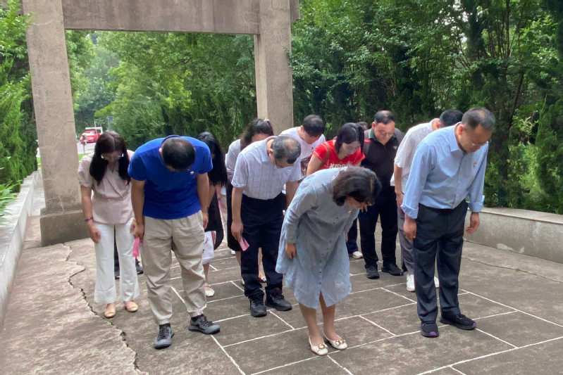 随后,全体同志行至陶行知先生墓碑前,依次瞻仰了墓前印刻的陶行知手迹“爱满天下”和坊柱上陶行知遗教:“千教万教教人求真,千学万学学做真人”。全体同志于墓碑前庄严肃立,行三鞠躬礼,表达对这位伟大人民教育家的深切缅怀和敬仰。