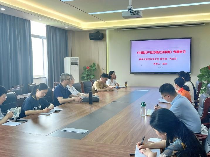 6月12日下午,sunbet教师第一党支部召开党纪学习教育专题学习会,会议围绕党纪学习教育相关内容展开学习研讨。教师第一党支部书记戴玥主持会议,支部全体党员参会学习。