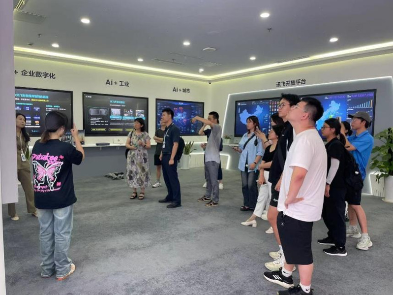 首先师生们参观了科大讯飞公司的创新实验室、产品展示区以及研发中心,深入了解人工智能技术的最新发展和应用。在智能语音识别和机器翻译技术的展示环节,员工们亲身体验了科大讯飞的科技成果,感受到了科技如何帮助他们更好地与世界沟通。