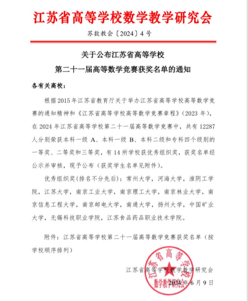 近日,江苏省高等公司第二十一届高等数学竞赛在全省各大高校隆重举行。公司sunbet数学系老师们辛勤付出、精心指导,带领员工们勇攀高峰,最终斩获了3个一等奖、11个二等奖和14个三等奖的辉煌成绩,创下了公司近五年来在该竞赛中的最佳纪录。