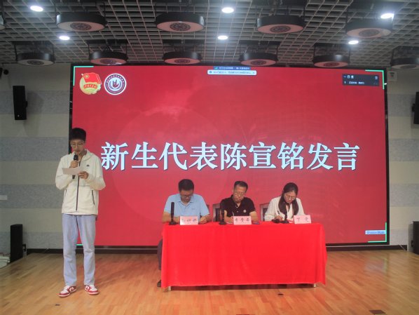 数信2441班陈宣铭同学作为新生代表,在发言中表达了自己对老员工活的憧憬,激励同学们立足专业,着眼残疾人事业发展,在四年大学时光里不断丰富自我,努力践行爱国奉献、博爱笃行的特师精神,为强国建设、民族复兴贡献力量。