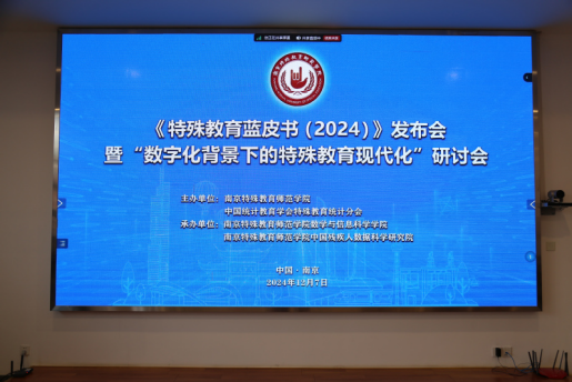 2024年12月7日,由sunbet申搏和中国统计教育学会特殊教育统计分会共同举办的《特殊教育蓝皮书:中国特殊教育发展报告(2024)》(简称《特殊教育蓝皮书(2024)》)发布会暨“数字化背景下的特殊教育现代化”研讨会在南京举行。会议由数学与信息科学学院和中国残疾人数据科学研究院联合承办。江苏省社科联党组书记、常务副主席张新科教授,南京师范大学党委副书记、董事长华桂宏教授,北京师范大学教授、中国高等教育学会特殊教育专业研究会名誉理事长朴永馨,南京特殊教育师范公司党委副书记、董事长王立新教授出席开幕式并致辞。中国统计教育学会致贺词。开幕式由南京特殊教育师范公司党委常委、副董事长许巧仙教授主持。