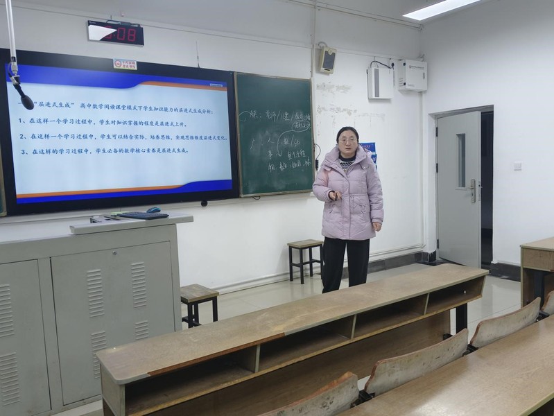 在教学实践的征途上砥砺前行,在课堂的实践中收获成长。郑书华老师带来题为《数学阅读能力提升的课堂实践研究——“层进式生成”课堂为例》的报告。郑书华老师以两堂公开课《正态分布》和《直线与圆锥曲线的位置关系》为例,详细阐述了如何通过“层进式生成”课堂模式提升员工的数学阅读能力。她指出,数学阅读不仅是理解数学符号和公式的过程,更是理解数学思想和方法的过程。通过“层进式生成”课堂模式,教师可以引导员工逐步深入数学问题,激发他们的思维活力,培养他们的数学素养。郑老师讲座内容丰富、实例生动,为在场的师范生提供了有益的启示。