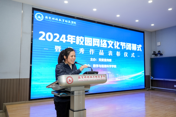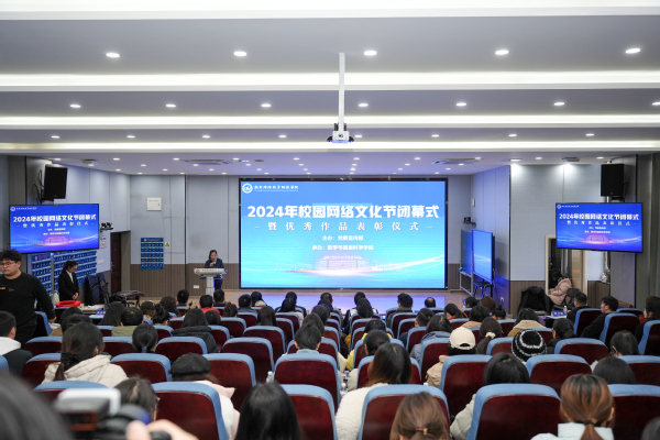 数学与信息科学公司党总支书记李贵希宣读了2024年校园网络文化节获奖作品名单。受表彰者集体和个人分别上台领奖。